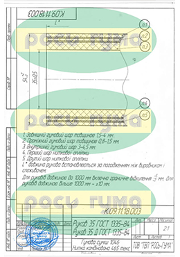 Рукава мають три основні розміри по внутрішньому діаметрі -Ø35мм, Ø28мм, Ø25мм. Довжина рукавів узгоджується із замовником. Конструкція рукавів містить три гумові шари, між якими знаходяться дві силові нитяні обплітки.